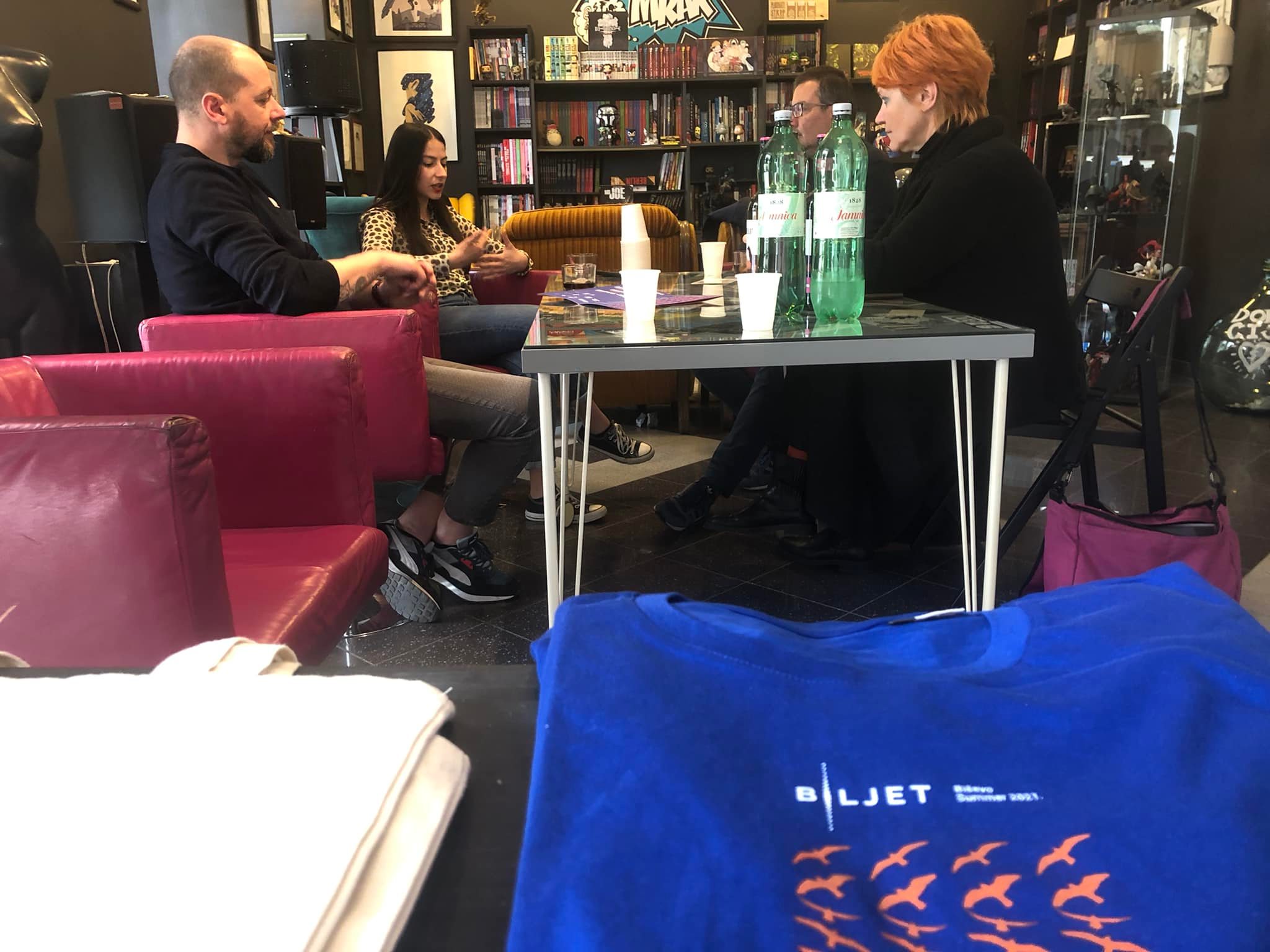 In addition to the opening of the exhibition itself, on Saturday 9.5. at 12:00 p.m., an informal gathering was organized on the topic “Art residencies on an offshore island – How and why?” where everything that the organizers and residents went through together during the two months of the residency was discussed.
