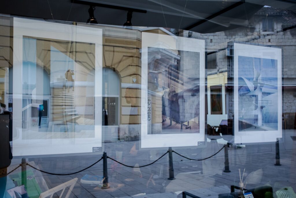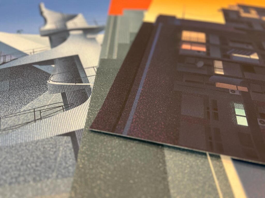 Zakoračite u svijet urbanih pejzaža i antologijskih djela hrvatske moderne arhitekture, viđenih kroz oči četiri dizajnera i ilustratora: Gorana Radoševića, Ivana Milasa, Ivana Perkova i Nikše Vukše.
