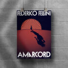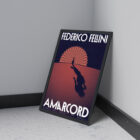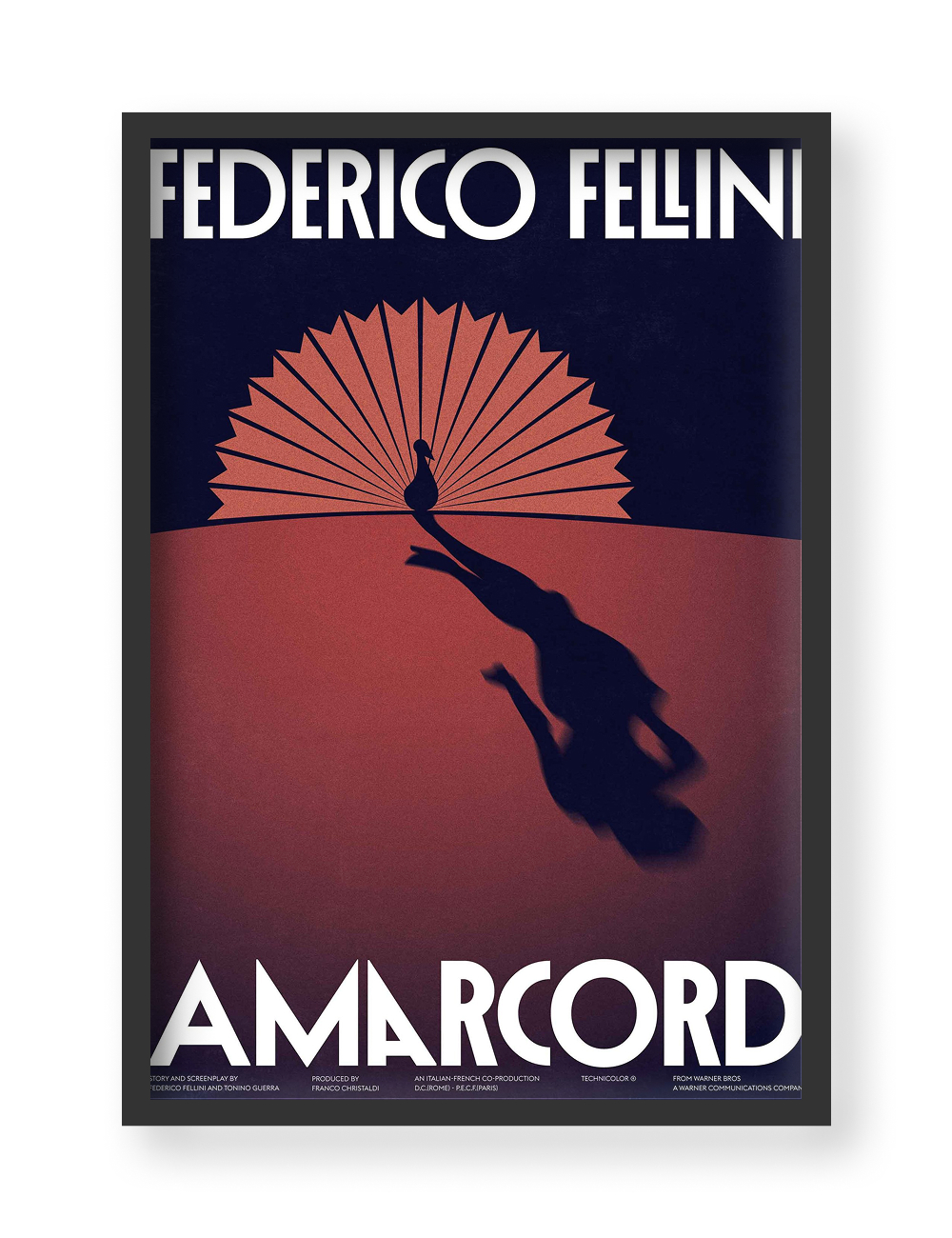 This elegant limited edition art print by artist Max Rodenkirchen offers a minimalist reinterpretation of Federico Fellini’s Amarcord (1973). A peacock casting the shadow of a woman becomes a poetic symbol of memory and desire, reflecting the film’s surreal blend of nostalgia, adolescence, and small-town reverie.