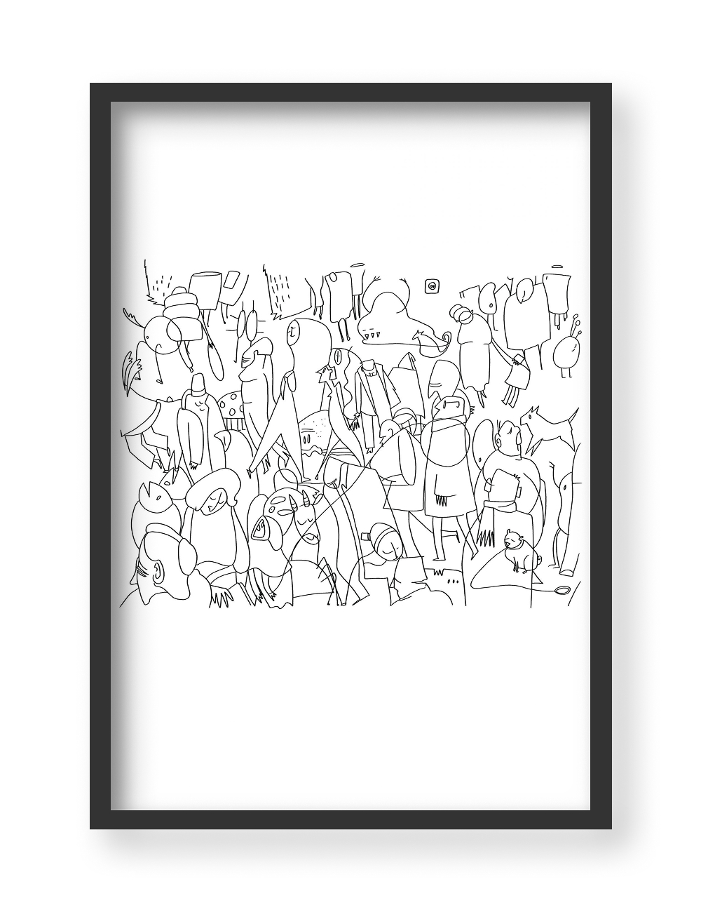 The illustration First is primarily shown from a bird’s eye view, through which each of the characters loses their own identity as they blend into the crowd.