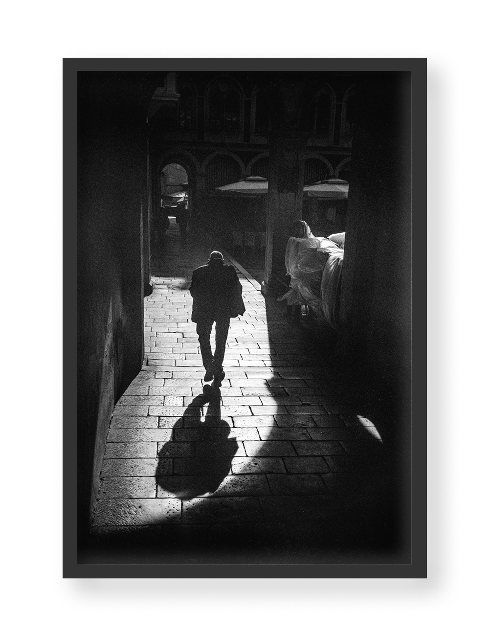 Photographer Mile Modic in this series of analog black-and-white photographs captures the motifs of the old part of the town of Split, recording recognizable faces, places, and situations. In the photo On the Way to the Fish Market, intense contrasts of black and white add mystique to recognizable locations, making them alluring to every observer.