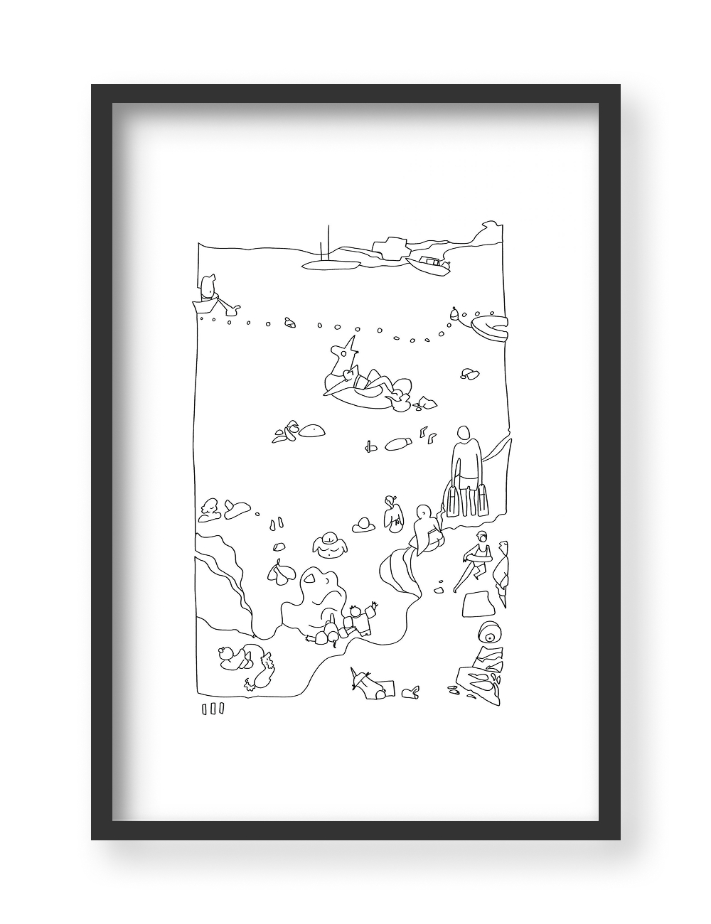 The illustration Splitska is primarily shown from a bird’s eye view, through which each of the characters loses their own identity as they blend into the crowd.