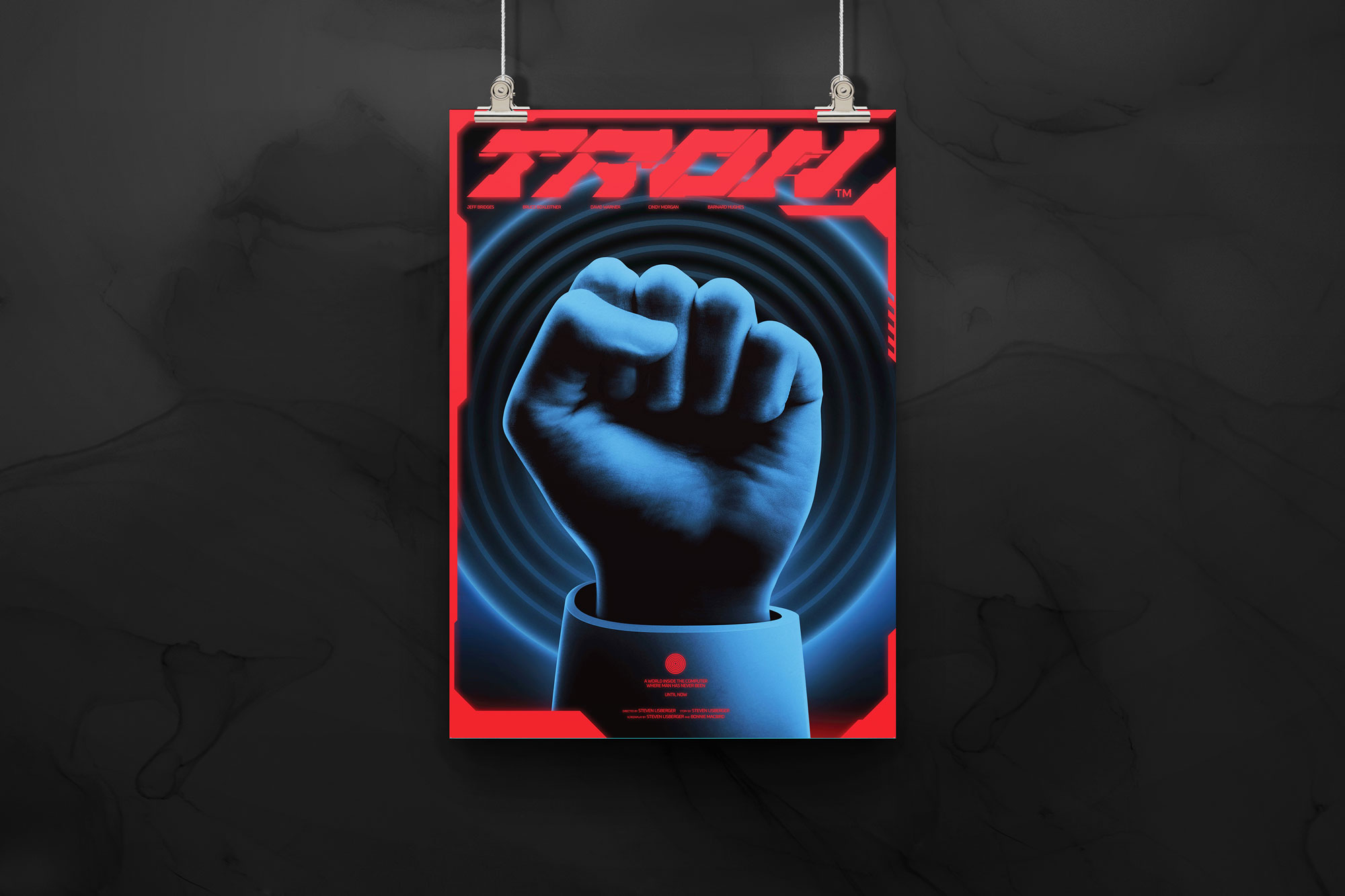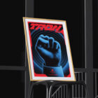 Boris Pehar’s interpretation of Tron centers on a clenched neon fist, rising against concentric waves of energy. The bold, geometric composition transforms the film’s digital rebellion into a universal symbol of defiance, highlighting Tron’s pioneering role in visualizing human struggle within the realm of technology.