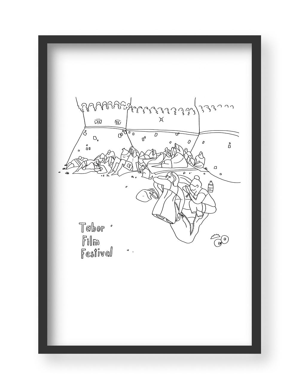 The illustration Two Blueberries is primarily shown from a bird’s eye view, through which each of the characters loses their own identity as they blend into the crowd.